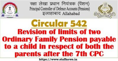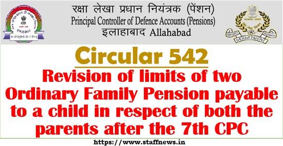 7th CPC – Revision of limits of two Ordinary Family Pension payable to a child in respect of both the parents after the 7th CPC: PCDA(P) Circular No. 654