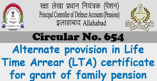 Life Time Arrear (LTA) certificate for grant of family pension – Alternate provision reg : PCDA Circular No. 656