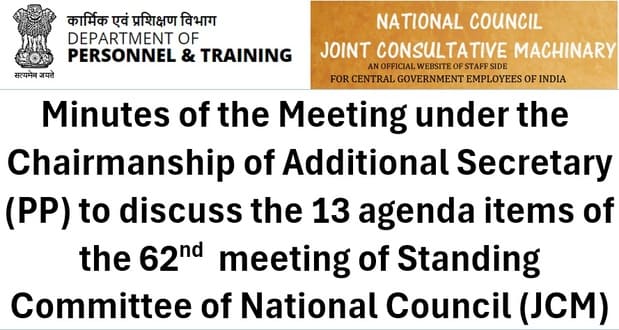 62nd meeting of Standing Committee of National Council (JCM) to discuss 13 agenda items under the Chairmanship of Additional Secretary (PP): Minutes of the Meeting