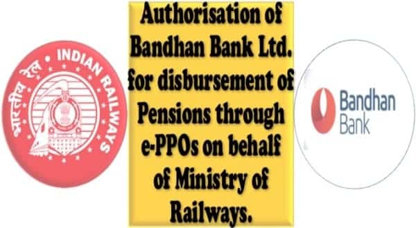 Authorisation of Bandhan Bank Ltd. for disbursement of Pensions through e-PPOs on behalf of Ministry of Railways.