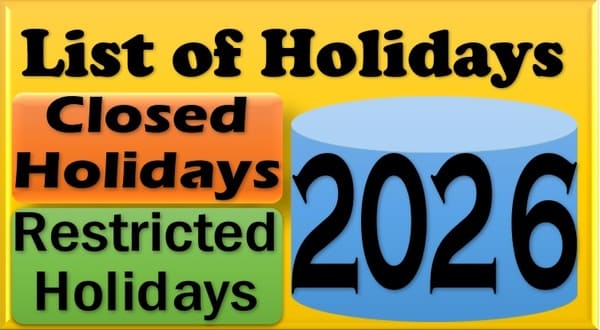 It has been decided that the holidays, as specified in the Annexure -I to this O.M., will be observed in all the Administrative Offices of the Central Government located at Delhi/New Delhi during the year 2026. In addition, each employee will also be allowed to avail himself/herself of any two holidays to be chosen by him/her out of the list of Restricted Holidays specified at Annexure – II.
