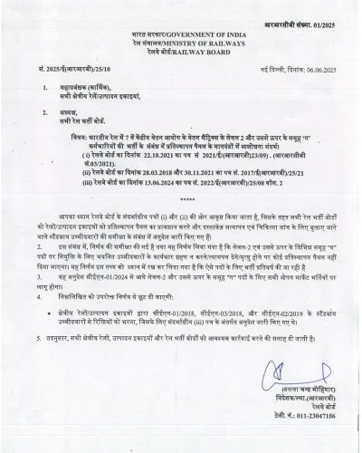 5. All Zonal Railways, Production Units and Railway Recruitment Boards are advised to take necessary action accordingly.