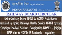 Extra-Ordinary Leave (EOL) to Probationers: ADMO recruited in IRHS through CMSE – Joining NAIR due to COVID-19 Pandemic: Railway Board Order