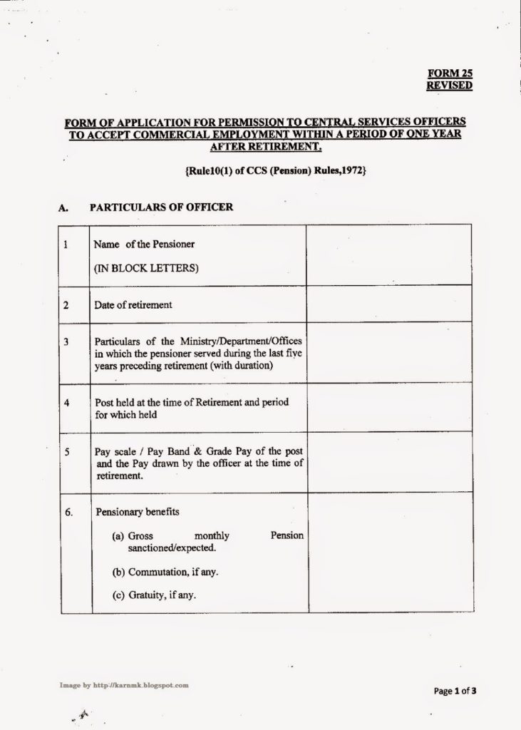 Procedure for grant of permission to the pensioners for commercial employment after retirement — revision of Form 25.